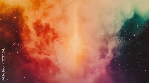 Fototapeta premium Cosmic swirl of vibrant hues, a mesmerizing blend of orange, pink, and teal, speckled with distant stars.