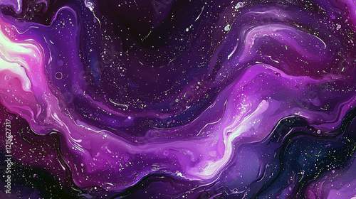 Obraz premium Cosmic Swirls: Abstract Purple Galaxy Painting, Space Art, Fluid Design
