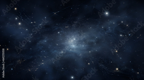 Naklejka premium Cosmic symphony - Luminous dots in the celestial web. Nebula, bright star background, backdrop, constellation, universe. Generative AI.