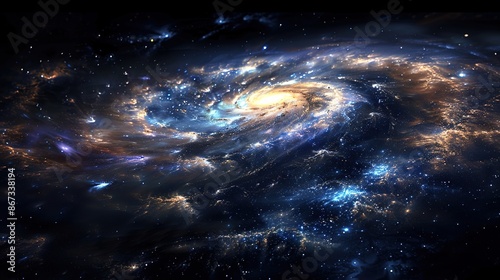 Fototapeta premium Cosmic Symphony: Swirling Galaxy with Luminous Stars and Nebulae