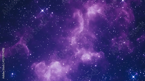 Fototapeta premium Cosmic Tapestry of Celestial Clouds, Sparkling Stars and Deep Space Purple...