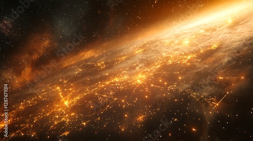 Naklejka premium Cosmic trade routes visualized as radiant stars interconnected by glowing...