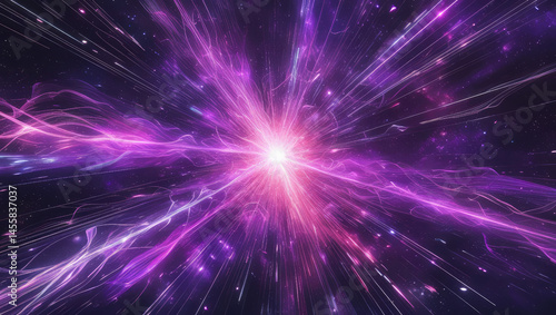 Naklejka premium Cosmic violet energy explosion radiates through space