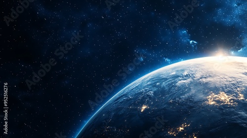 Obraz premium Cosmic Vision - Earth's Glowing Atmosphere in Cinematic Lighting Against Deep...