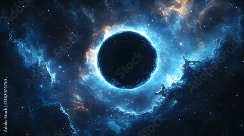 Naklejka premium Cosmic void surrounded by glowing nebulae.