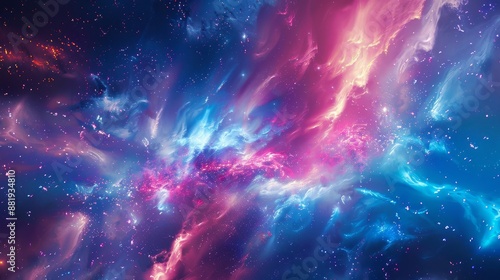 Fototapeta premium Cosmic wallpaper in blue and pink featuring swirling nebula-like shapes