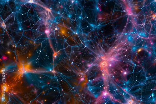 © ภวัต สายวงค์, Obraz premium Cosmic Web Interconnected Galaxies Visualization.