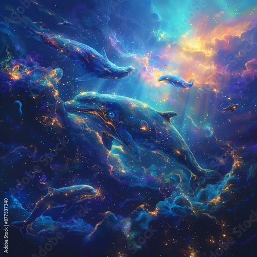 © Saltanat, Fototapeta premium Cosmic Whales