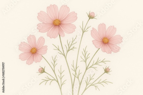 Naklejka premium Cosmos Flower Elegance: Delicate cosmos flowers, with their soft petals, grace a gentle and artistic floral display.
