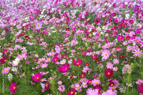 © saelim, Naklejka premium Cosmos Flower field blooming