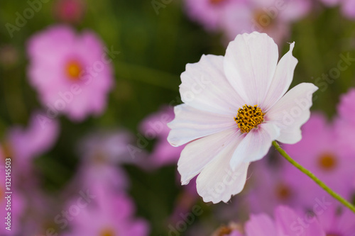 Fototapeta premium Cosmos flowers blooming in the garden. Winter season.