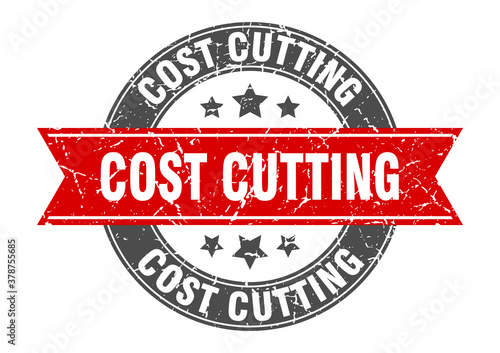 © Aquir, Obraz premium cost cutting round stamp with ribbon. label sign
