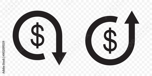 Obraz premium Cost reduction- decrease dollar icon on Transparent Background. EPS 10. Cost reduction icon vector. Dollar Down Icon vector.