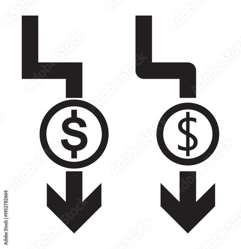 © Agastya 897, Fototapeta premium Cost reduction icon dollar. Price decrease arrow symbol. business sale sign illustration.