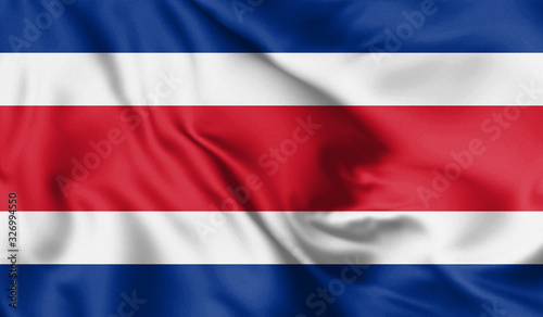 © Evgenia, Fototapeta premium Costa Rica flag blowing in the wind. Background silk texture. 3d illustration.