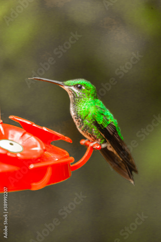 Fototapeta premium Costa Rica, home of the only backwards flying bird. This little artist loves sweets and is called the hummingbird
