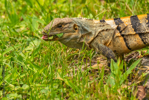 © Danita Delimont, Fototapeta premium Costa Rica, Parque Nacional Carara. Close-up of black iguana eating .