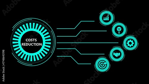 © M.S, Obraz premium Costs reduction strategy infographic representing ideas growth partnership and goals achievement