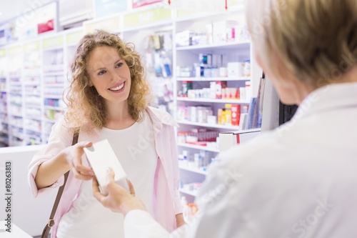 © WavebreakMediaMicro, Obraz premium Costumer taking medicine box