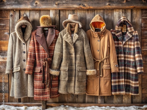 Fototapeta premium cosy winter coats in rustic style