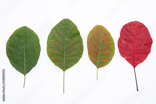 Fototapeta premium cotinus coggyria leaves from green to red on white background
