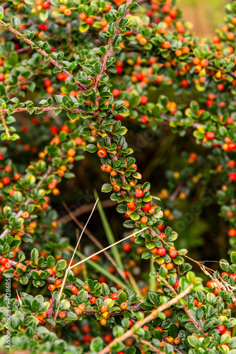 © CarlosHerreros, Obraz premium Cotoneaster horizontalis pertenece a la familia Rosaceae.
