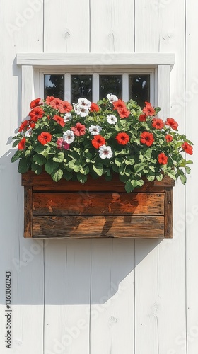 Naklejka premium Cottage Charm, Window boxes with flowers