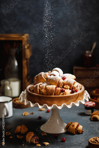 © Agnes, Fototapeta premium Cottage cheese croissant with walnuts on grey background