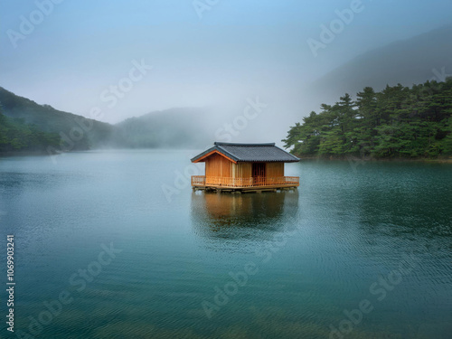 © Ali Saadat, Fototapeta premium cottage in the lake