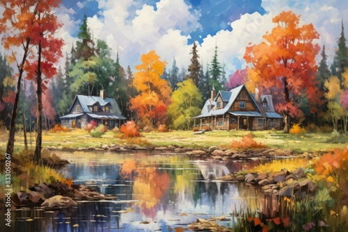 © Sidewaypics, Fototapeta premium Cottages and cabins - Generative AI