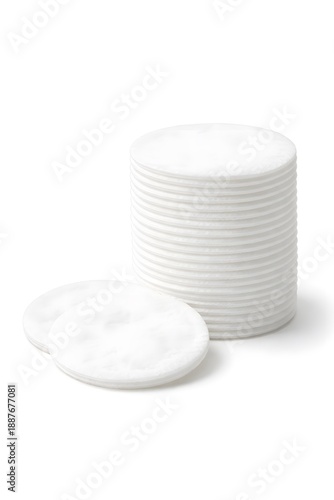 © Olinka N, Obraz premium Cotton Pads Stack Isolated on White Background, Skincare and Medical Use