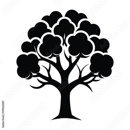 © Pramila, Fototapeta premium Cotton tree silhouette on white background