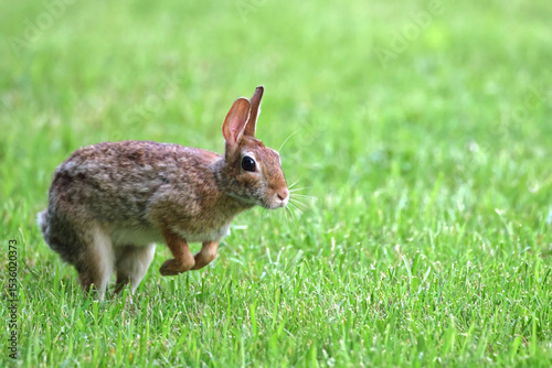 Fototapeta premium Cottontail, bunnies, playfully running in a grassy field.