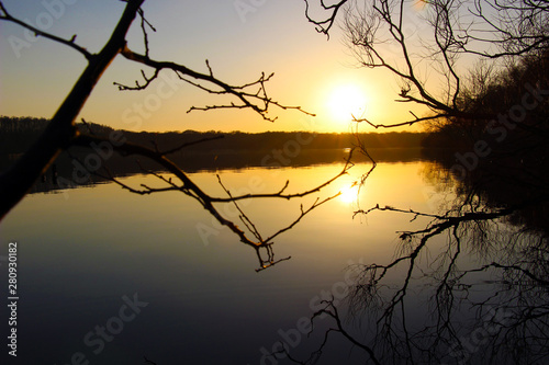 © C, Fototapeta premium Coucher de Soleil doré - silhouette d'arbre 2