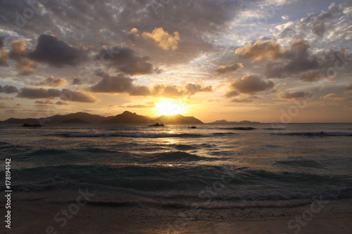 © Aurelie, Naklejka premium Coucher de soleil Seychelles