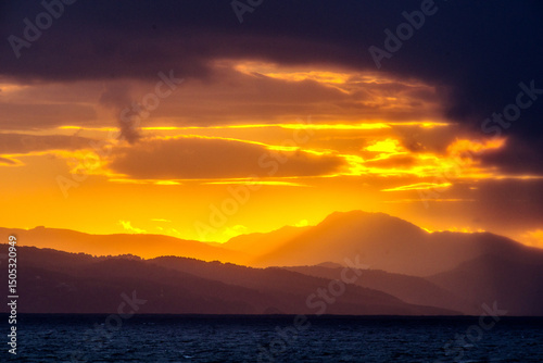 © Lenaick, Obraz premium Coucher de soleil sur la côte basque, vu de Biarritz