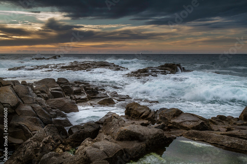 © philkilla, Fototapeta premium Coucher de soleil sur la côte rocheuse