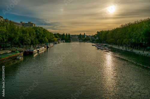 Fototapeta premium Coucher de soleil sur le canal de l'Ourcq