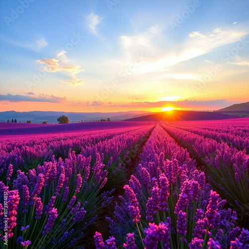 © Rigel, Naklejka premium Coucher de soleil sur un champ de lavande en Provence en France