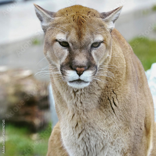 © Steam Cone Story, Naklejka premium Cougar Facing Forward in Enclosure