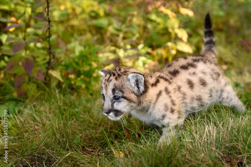 © hkuchera, Fototapeta premium Cougar Kitten (Puma concolor) Creeps Across Forest Floor Autumn
