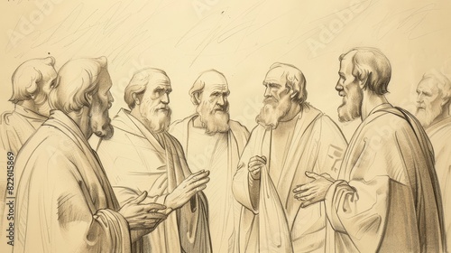 Fototapeta premium Council at Jerusalem with Apostles Debating Gentile Inclusion - Biblical Watercolor Illustration