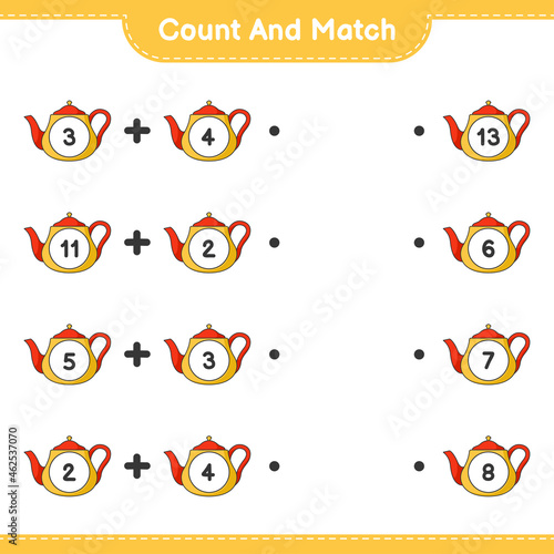 Fototapeta premium Count and match, count the number of Teapot and match with the right numbers. Educational children game, printable worksheet, vector illustration