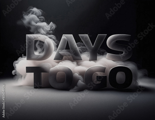 Fototapeta premium Countdown Text “Days To Go” in 3D Smoky Style with Abstract Cloud Effect on Dark Background for Event Promotions, Marketing, Launch Announcements, and Social Media Campaigns
