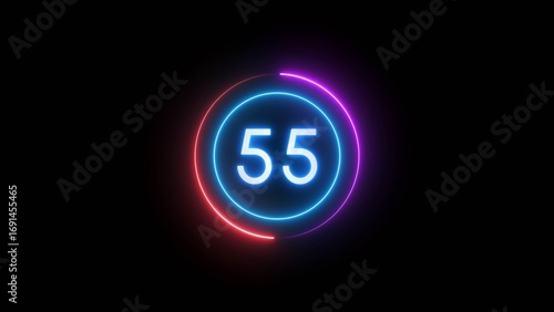 Obraz premium Countdown timer 55 seconds. Neon countdown number illustration.