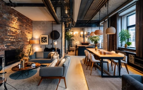 © 47Media, Fototapeta premium Countdown to Luxury: Dive into the Ultimate New Year's Eve Bash in this Industrial-Chic Apartment!