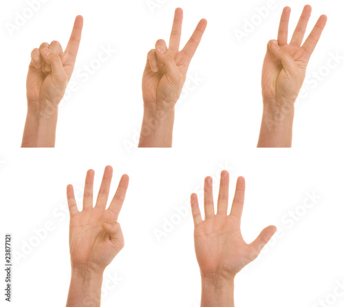 © Vankad, Fototapeta premium Counting hands isolated on white