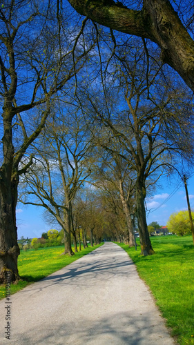 © acrogame, Fototapeta premium Country alley flanked by high trees