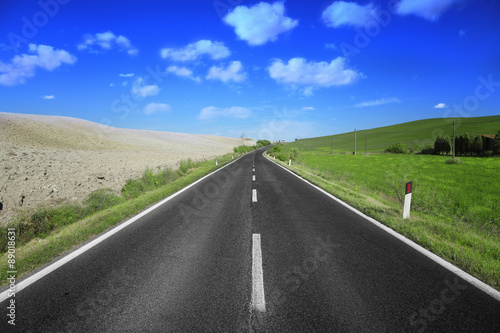 Fototapeta premium Country ashpalt road in Tuscany, Italy.