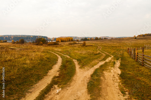 © Konstantin Romanov, Fototapeta premium Country crossroad at fall season